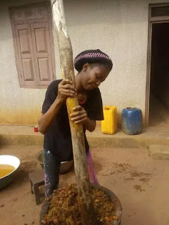 With current situation on the ongoing strike that has affected millions of undergraduates in Nigeria, a lady has shared photos of herself making palm oil in the village where she is stuck in due to the strike action by the Academic Staff Union of Universities, ASUU. See photos below