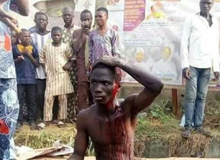 JUNGLE JUSTICE!! See How Crowd Dehumanized Suspected Ritualist Caught With Human Parts In Oyo (Photos)
