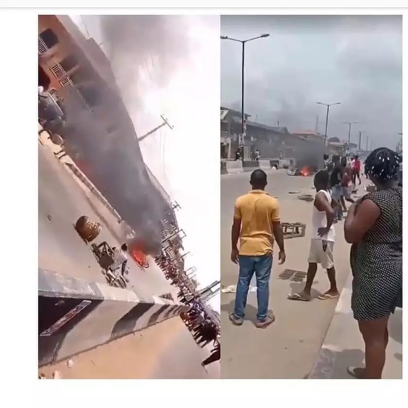 The elections are now in full gear as alleged APC ballot box snatching thug was captured and burnt alive by angry voters in Okota area of Lagos state - We have photos from the unfortunate incidence below: