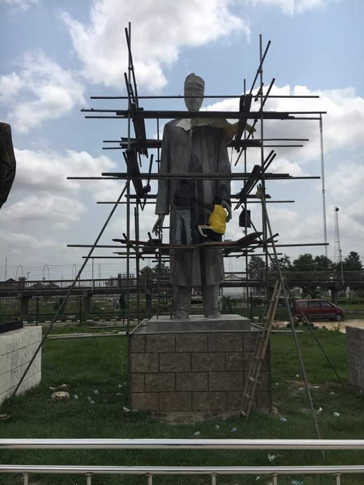 The caption given the images simply translates, “It’s like Okorocha is not tired of erecting statues, who is he erecting for Imo people again?”