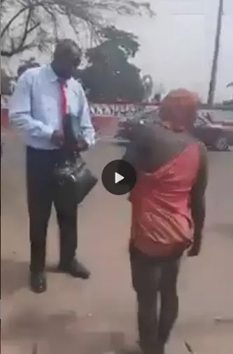 A yet to be identify Nigerian pastor was seen repeatedly slapped by a mad woman whom he was trying to heal from the madness in Edo.