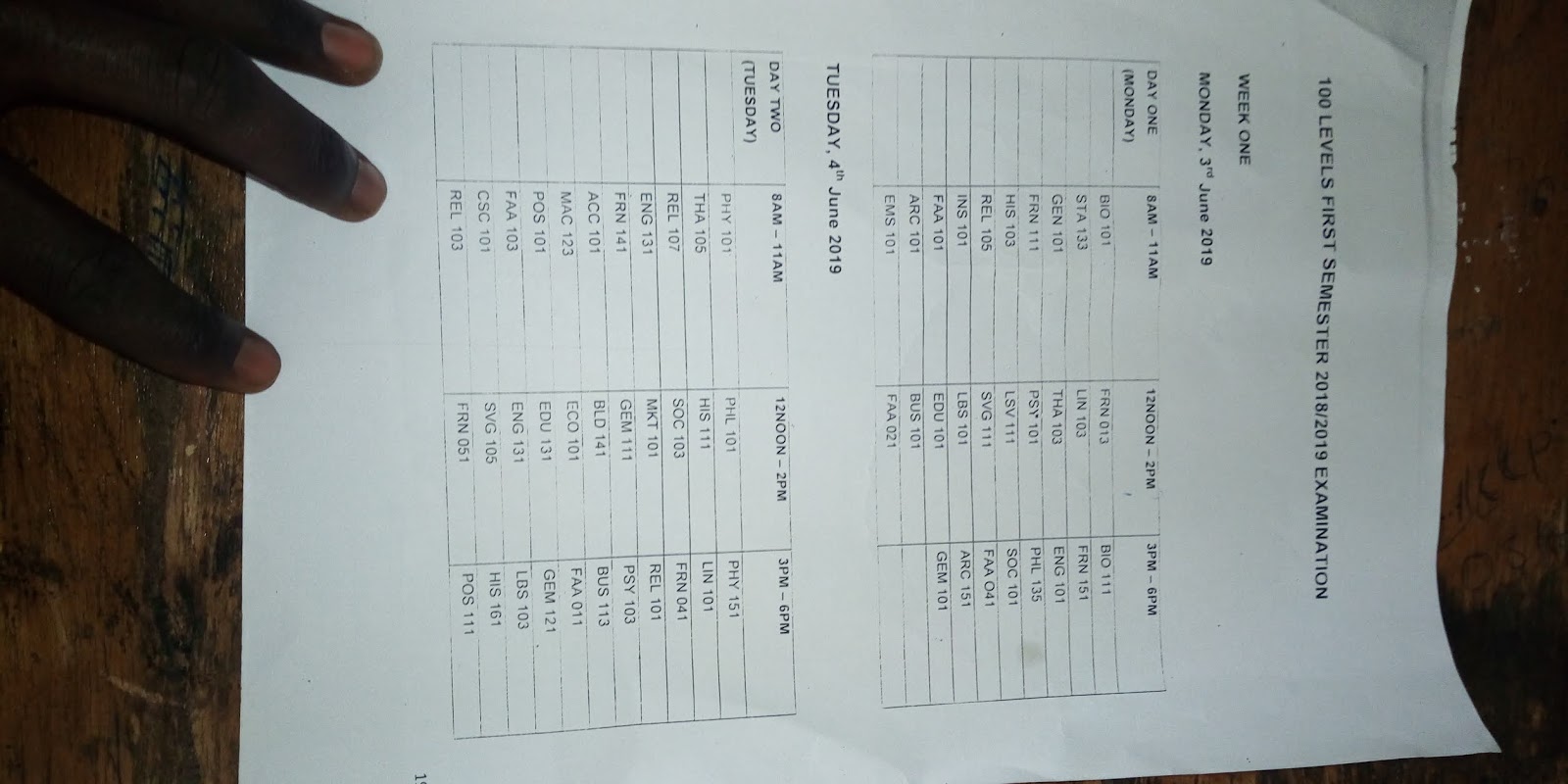 Imsu examination timetable for 2018/2019 session (first semester) all level