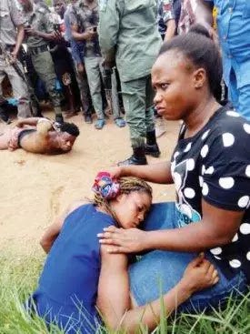 Witnesses further said one of the suspected kidnappers, in an alleged bid to disappear, threw a ring into his mouth but a policeman held his mouth wide open and removed the ring. Irate youths who gathered around the scene attempted to lynch the gang but the police prevented them.