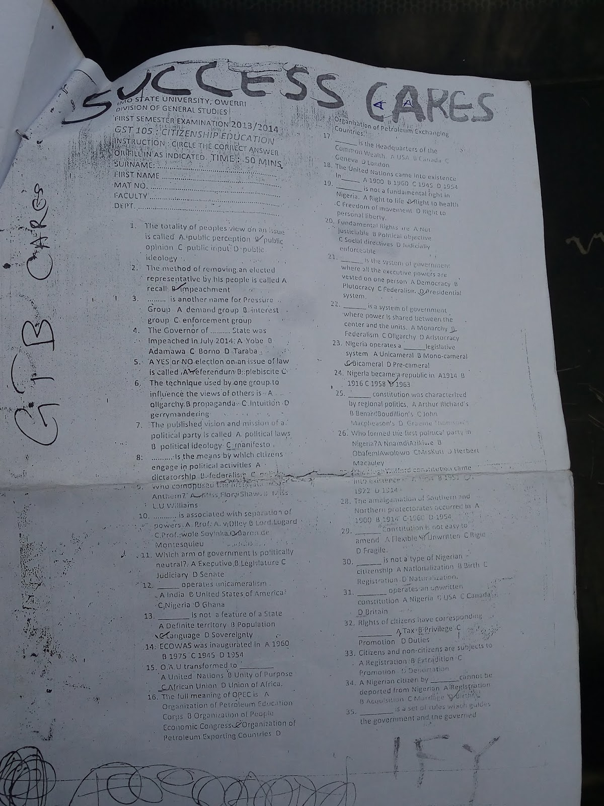 Because of change of GST questions last semester and this are the previous question asked in the 2017/2018 first semester examination which we fought so had to bringPlease download the images below Zoom to view it correctlyFrom imsugreats