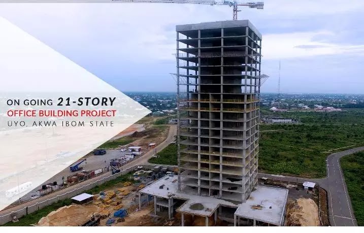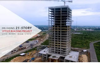 The 21 storey smart office building at the central bussiness district of Uyo, Akwa ibom state Capital city reaches its 21 floor.