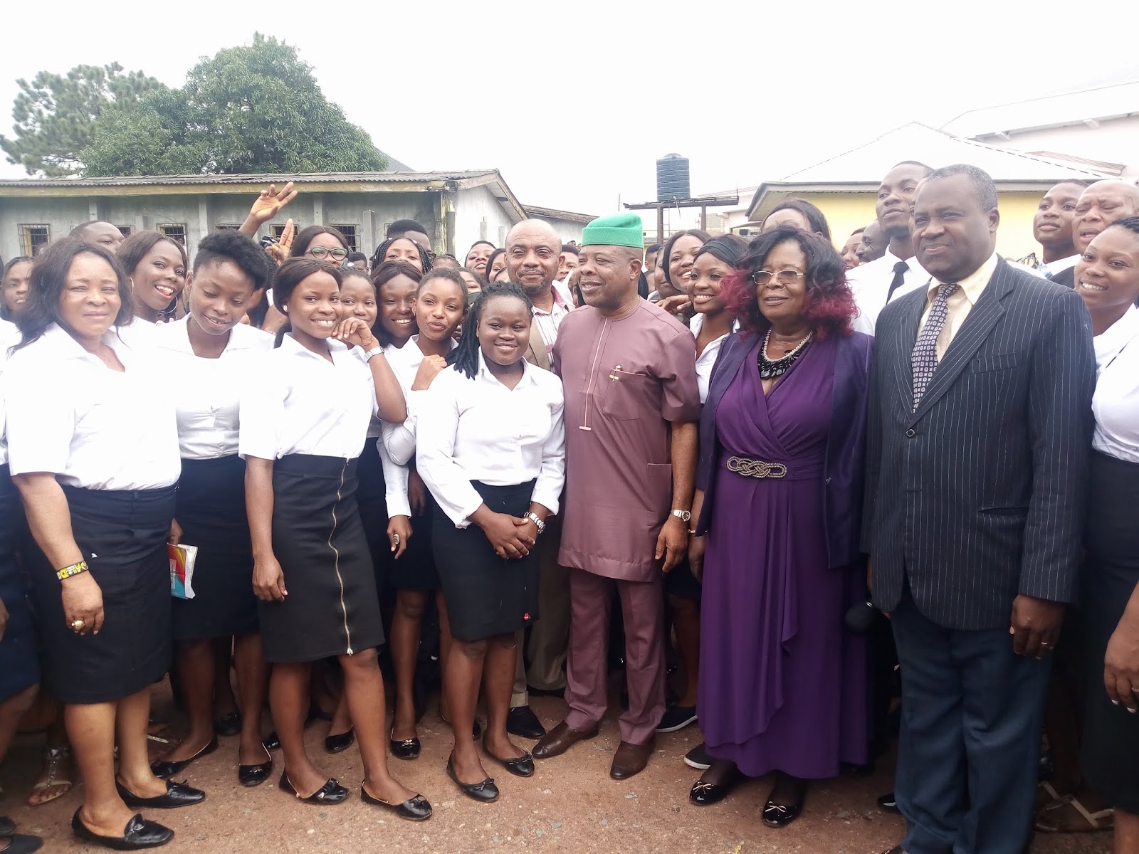 After Saturday state marathon environmental excerise/ clean up, the state governor visited imo state university by 10:am early in the morning .
