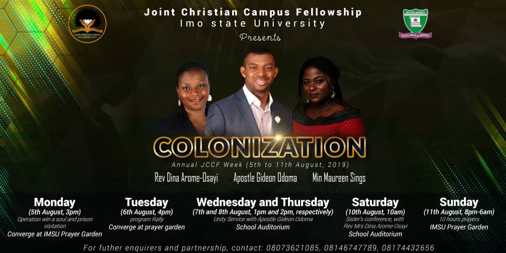 Saturday (10th August) sister conference with Rev Dina Aroma Osayi. 10am at unversity auditorium.