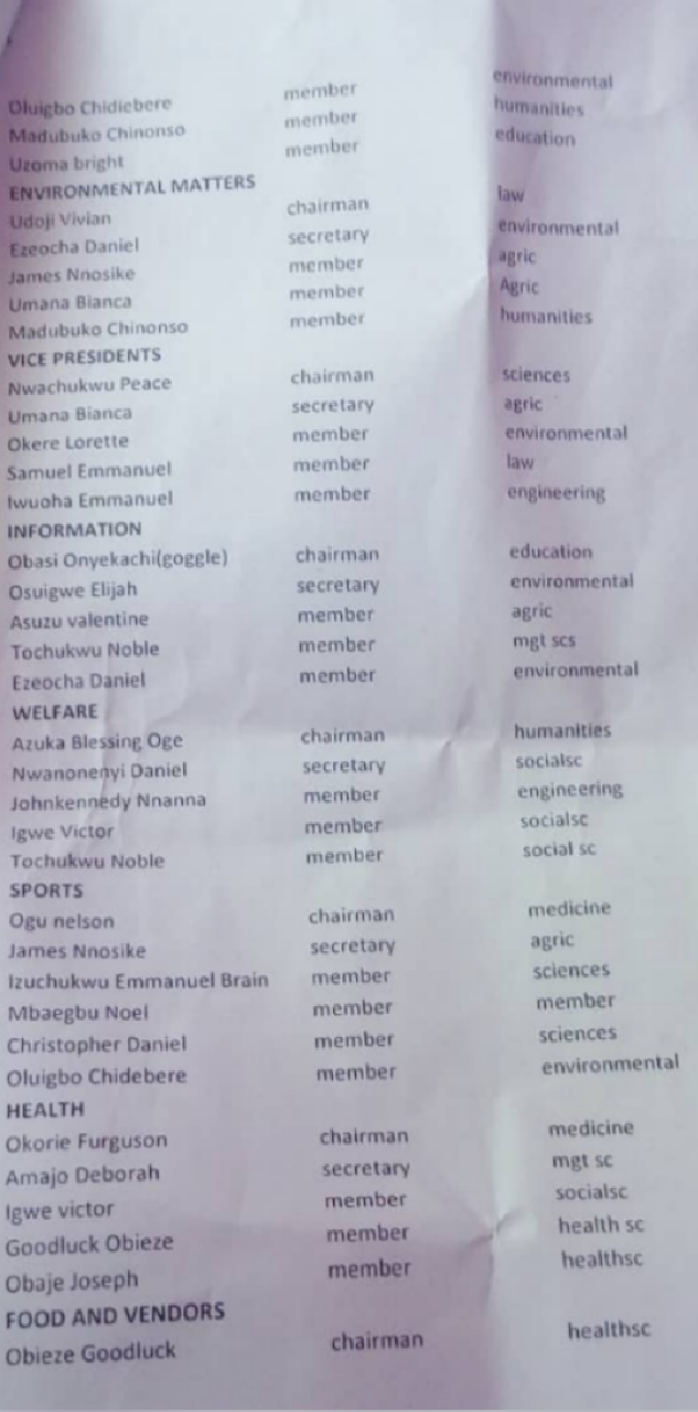 The following are the approved by the university management on in house commitee chairman, secretaries and member charged with the power to guide and bring transparency among tiers.