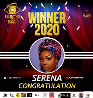 *Notwithstanding, Serena was the first head of the house, winner food artistry challenge, first runner up camera boy challenge,first runner up icon challenge and winner miss Ecofriend challenge of which she got so many cash prizes*