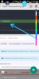 This will show Admission. Click to expand that and click Check 2019 UTME/DE Admission Status on CAPS.