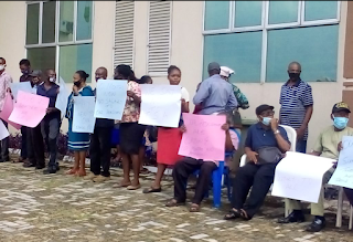 The workers in registering their grievances with the government and the management of the institution were seen carrying placards with different inscriptions. Some of the placards read: save us before we die, 10 months now no payment to our pensioners, Council please bring back our autonomy, we say no to staggering payment, 10 months no salary is not fair and many other placards with different inscriptions to press home their demand.