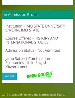 1. The 2020/2021 imsu Admission process has kick off on Jamb portal, interested candidates who applied for imo state University are notify to visit the jamb caps for checking.