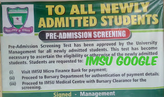 NOTICE ON IMSU PRE_ADMISSION SCREENING TEST.