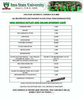 GOOD NEWS: 100% TESTED AND TRUSTED, STRESS FREE, DELAY FREE, ALL IMO STATE UNIVERSITY OWERRI – IMSU BURSARY ONLINE PAYMENTS (INTERSWITCH/QUICKTELLER PAYPOINT) NOW CLOSER TO YOUR DOORSTEP WITH SLASHED CHARGES AND SWIFT SERVICES @ IMSU GOOGLE ONLINE SERVICES LOCATED IMSU EXTENSION GATE, OWERRI.